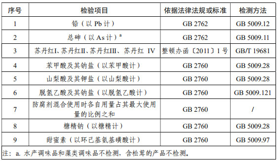 固體復(fù)合調(diào)味料抽檢項(xiàng)目: